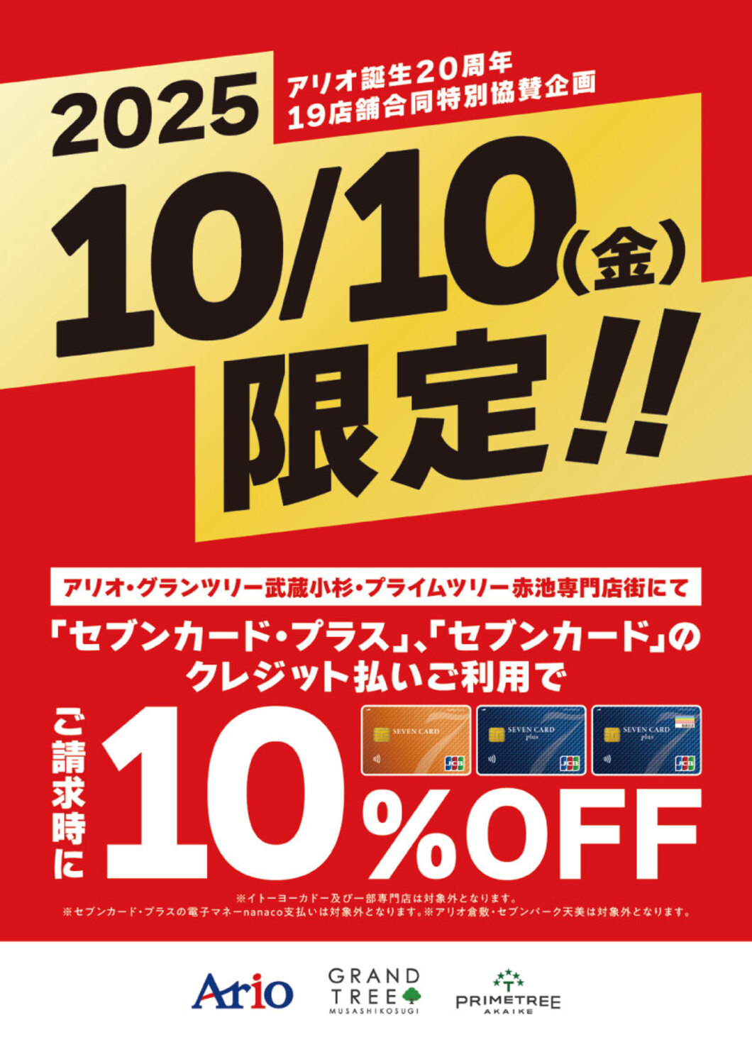 アリオ鷲宮専門店街にてセブンカード・プラス/セブンカードご利用で
