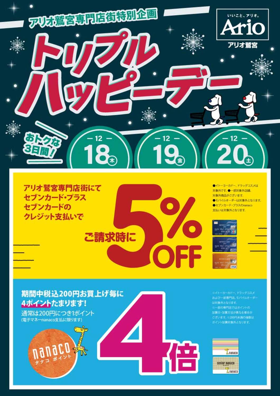 ☆アリオ鷲宮専門店街にて、nanacoカードでお支払いいただくとnanacoポイント4倍