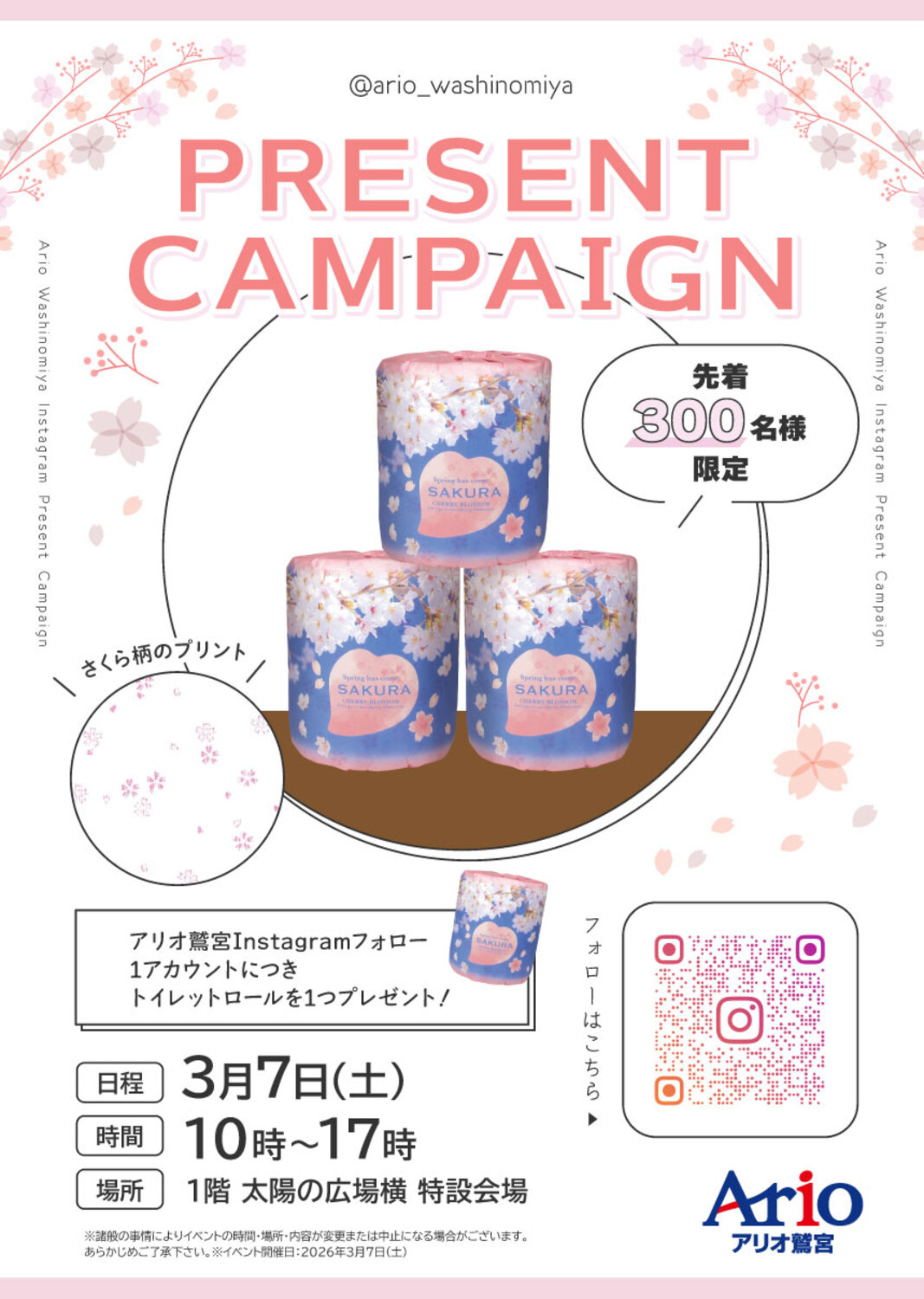 アリオ鷲宮Instagramフォロー1アカウントにつき