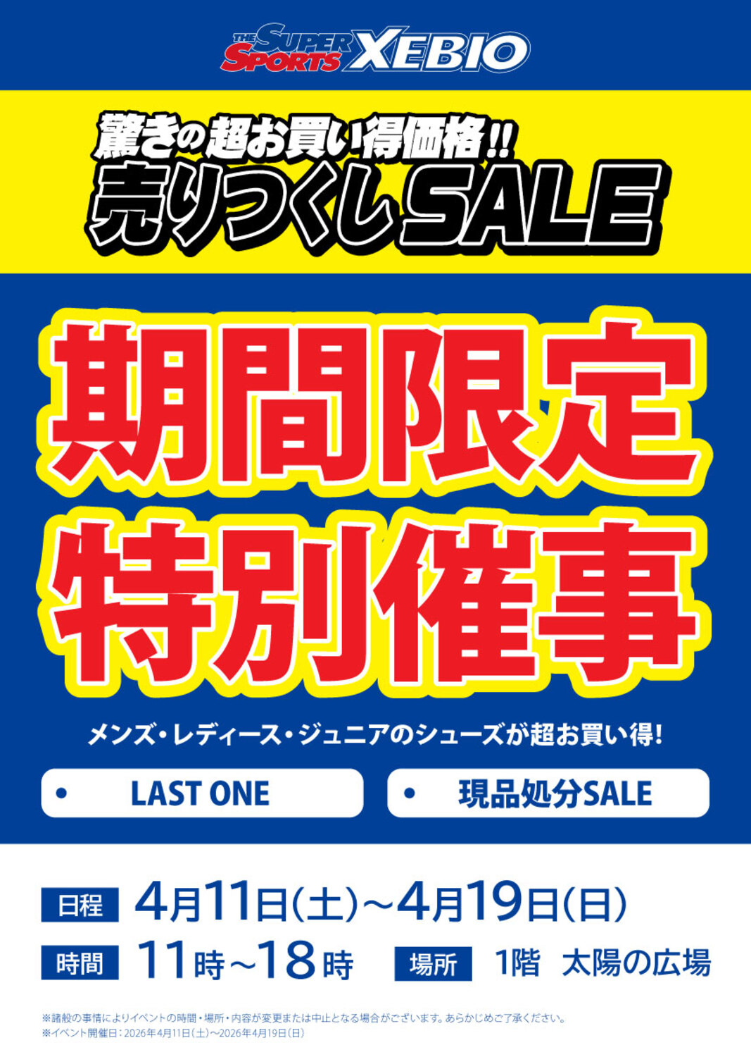 【4/11(土)~4/19(日)】スーパースポーツゼビオ 期間限定特別催事
