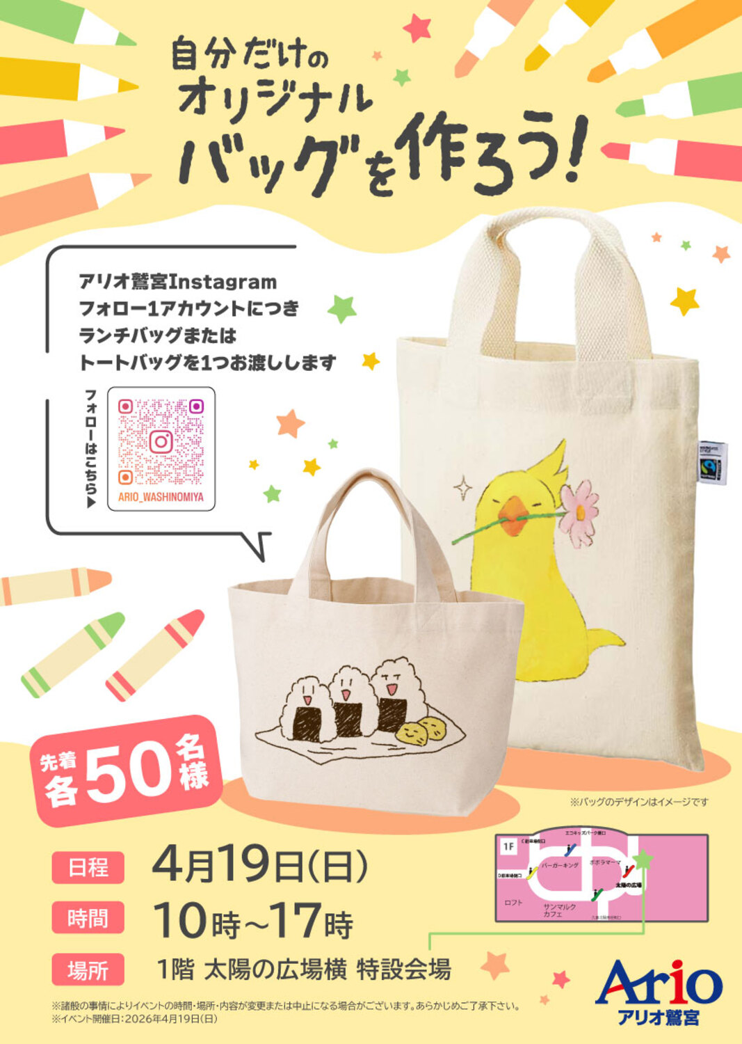 【4/19(日)】自分だけのオリジナルバッグを作ろう!