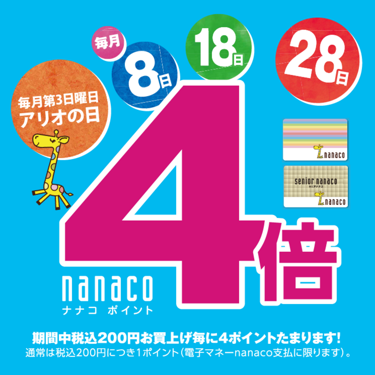 電子マネー nanacoでお支払いいただくとnanacoポイント4倍