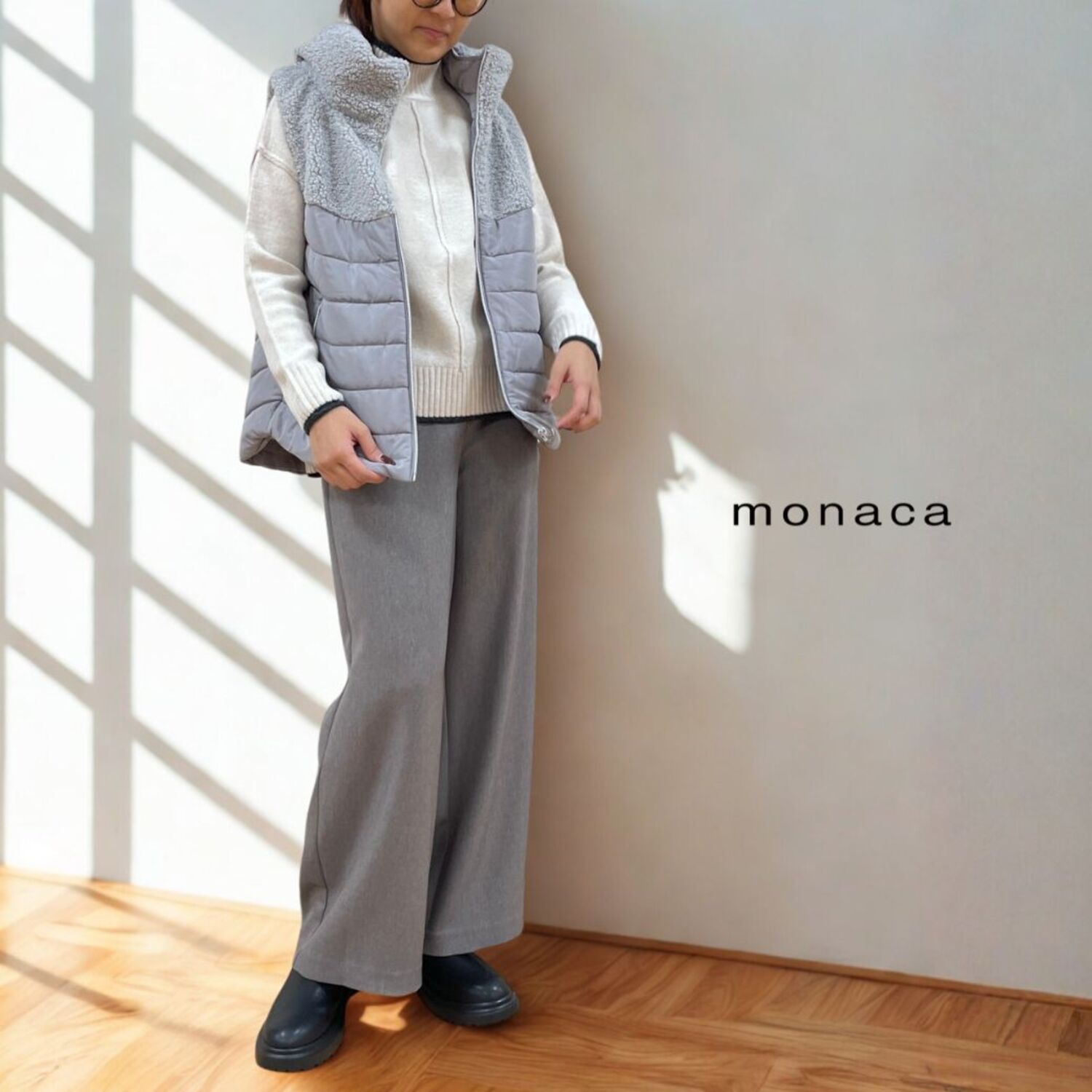 何を着たらいいか迷う季節の変わり目におすすめのベスト。袖がなく軽い着心地で、ニットの上にも重ねやすく日常動作もストレスフリー。ボリューム感があるのでシンプルなインナーと合わせるだけで様になり、秋から冬へ移る時期の万能アイテムとして活躍します。