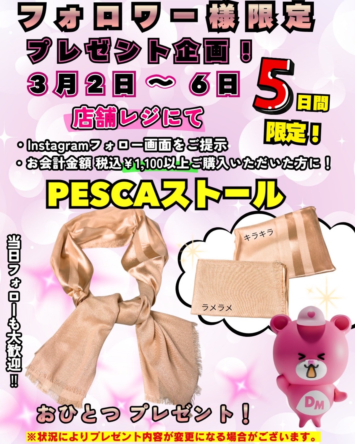 3月2日(月)〜5日間限定!Instagramフォロワー様限定プレゼント企画開催!!