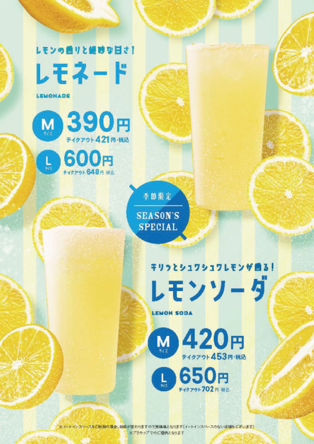 レモネード M 390円(税込421円) L 600円(税込648円)